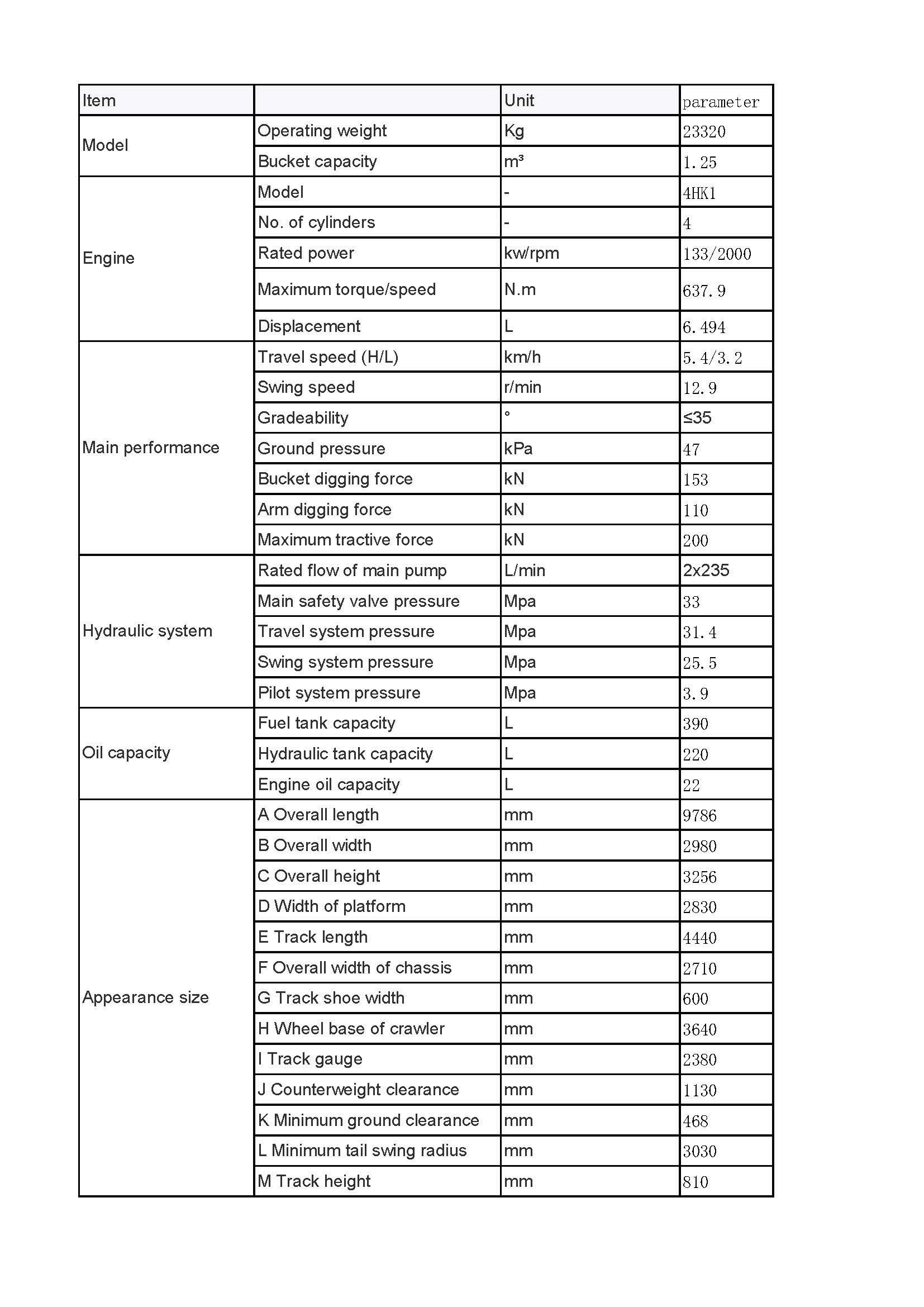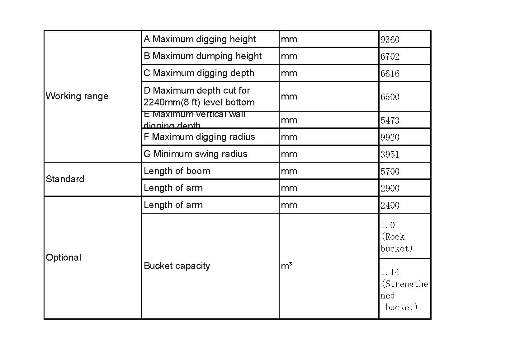 - Maximum Digging Height: